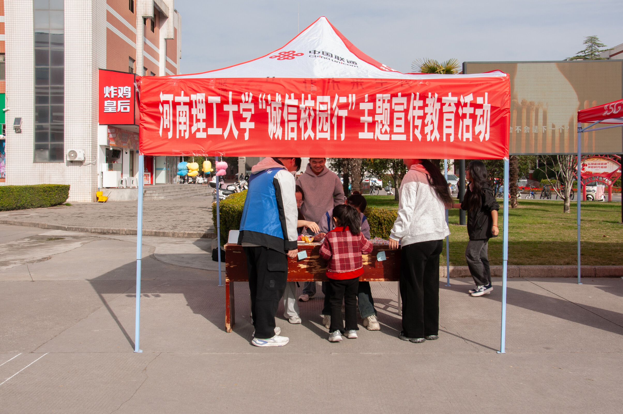 学生会学习部在学苑餐厅门口开展“诚信校园行”主题宣传活动。