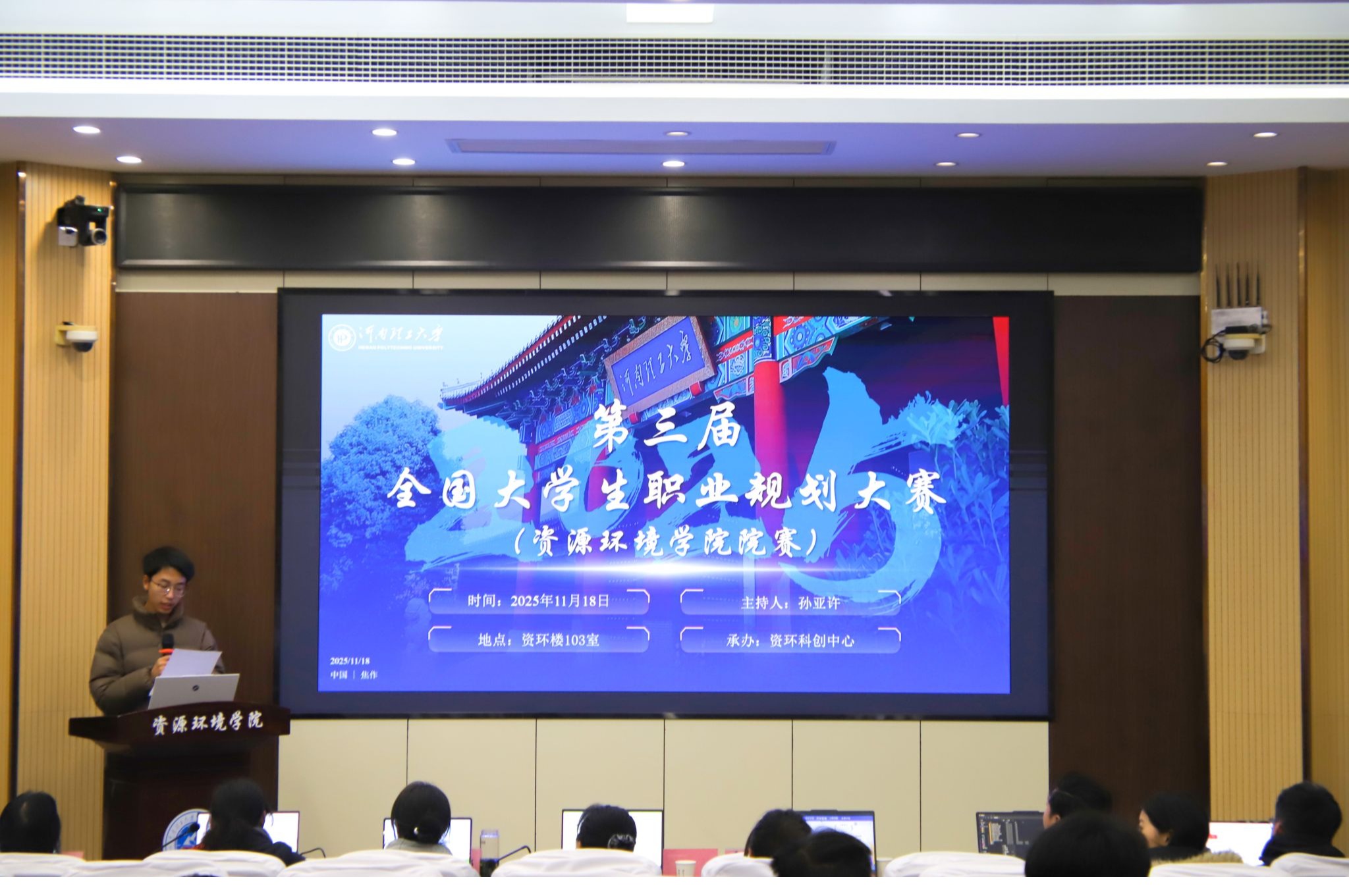 在资环楼第Ⅰ学术报告厅举办第三届大学生职业规划大赛院赛。院学工办主任张娜,研究生辅导员杨英、2023级辅导员李梦杰、2024级辅导员杨澳伟、2025级辅导员王静、薛梅及学生代表高志鑫担任本次大赛评委。