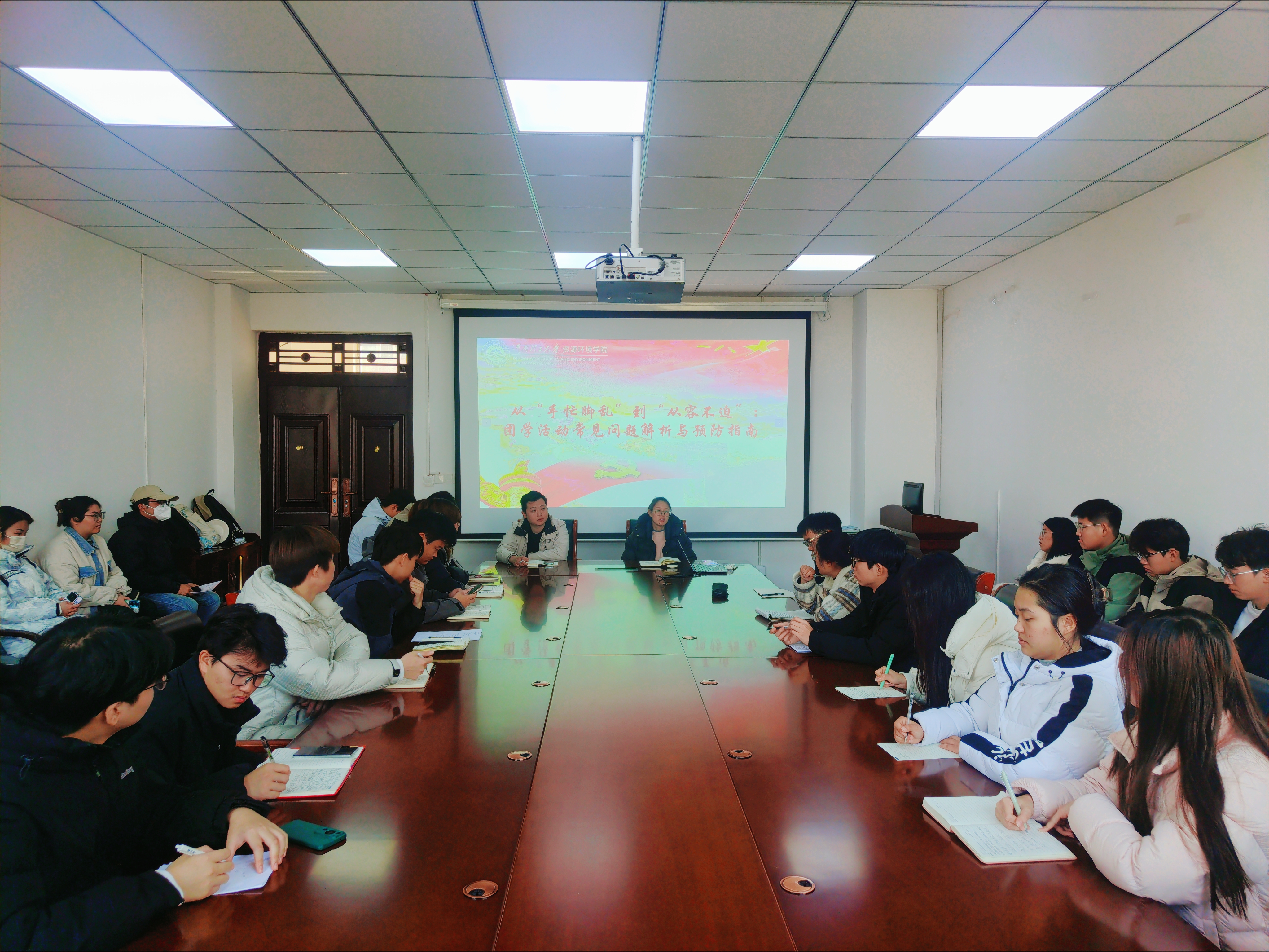 于第Ⅳ学术报告厅举办团学干部工作培训会。本次会议以“从‘手忙脚乱’到‘从容不迫’:团学活动常见问题解析与预防指南”为主题,核心在于规范工作标准,保障活动顺畅高效开展。学院团委副书记王梦利、2024级辅导员杨澳伟及各学生组织负责人参加培训。