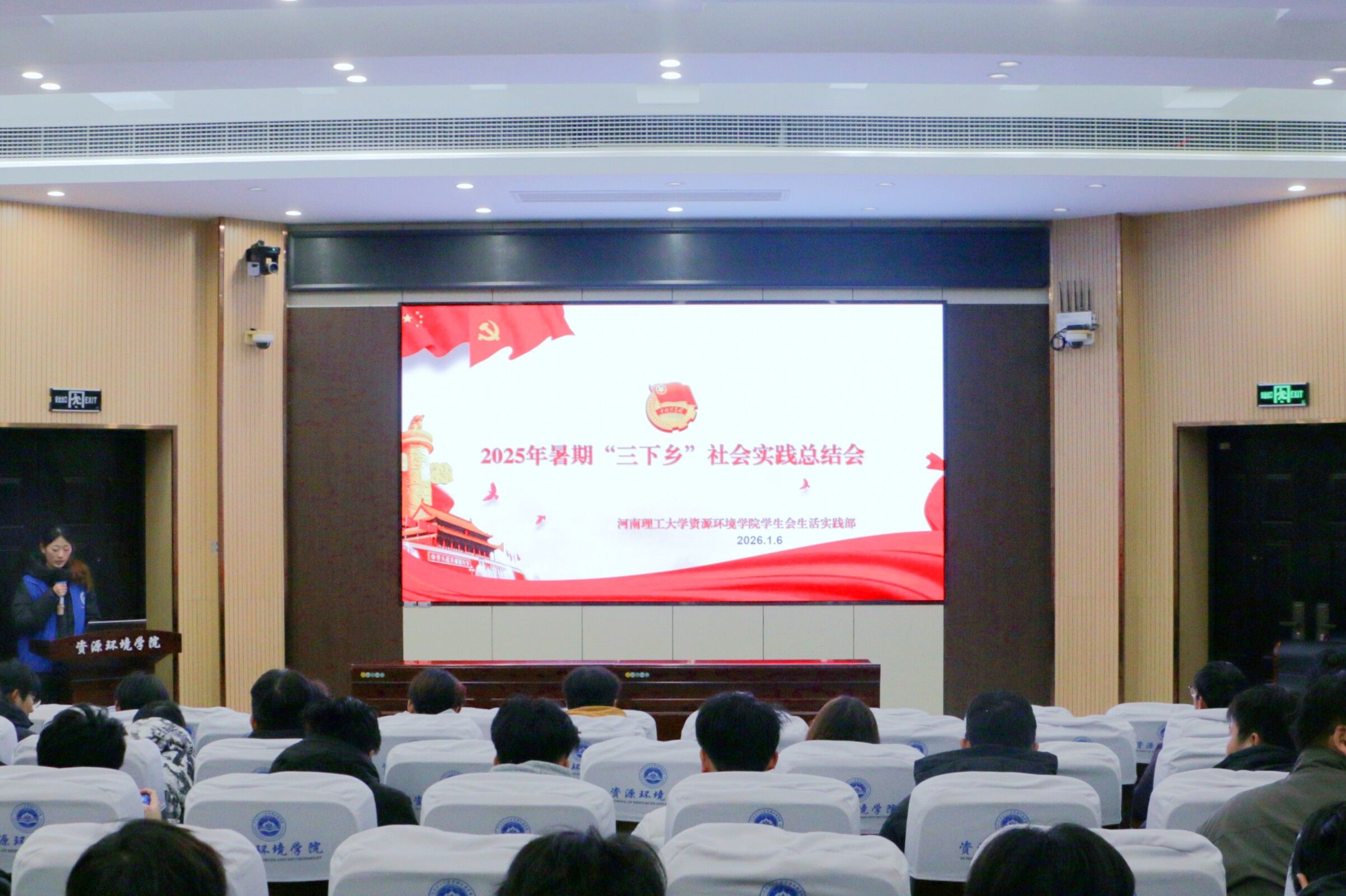 学生会生活实践部于第Ⅰ学术报告厅成功举办“实践砺初心,青春护山河”暑期社会实践总结会暨寒假社会实践宣介会,资环学院25级各班学生代表参会。
