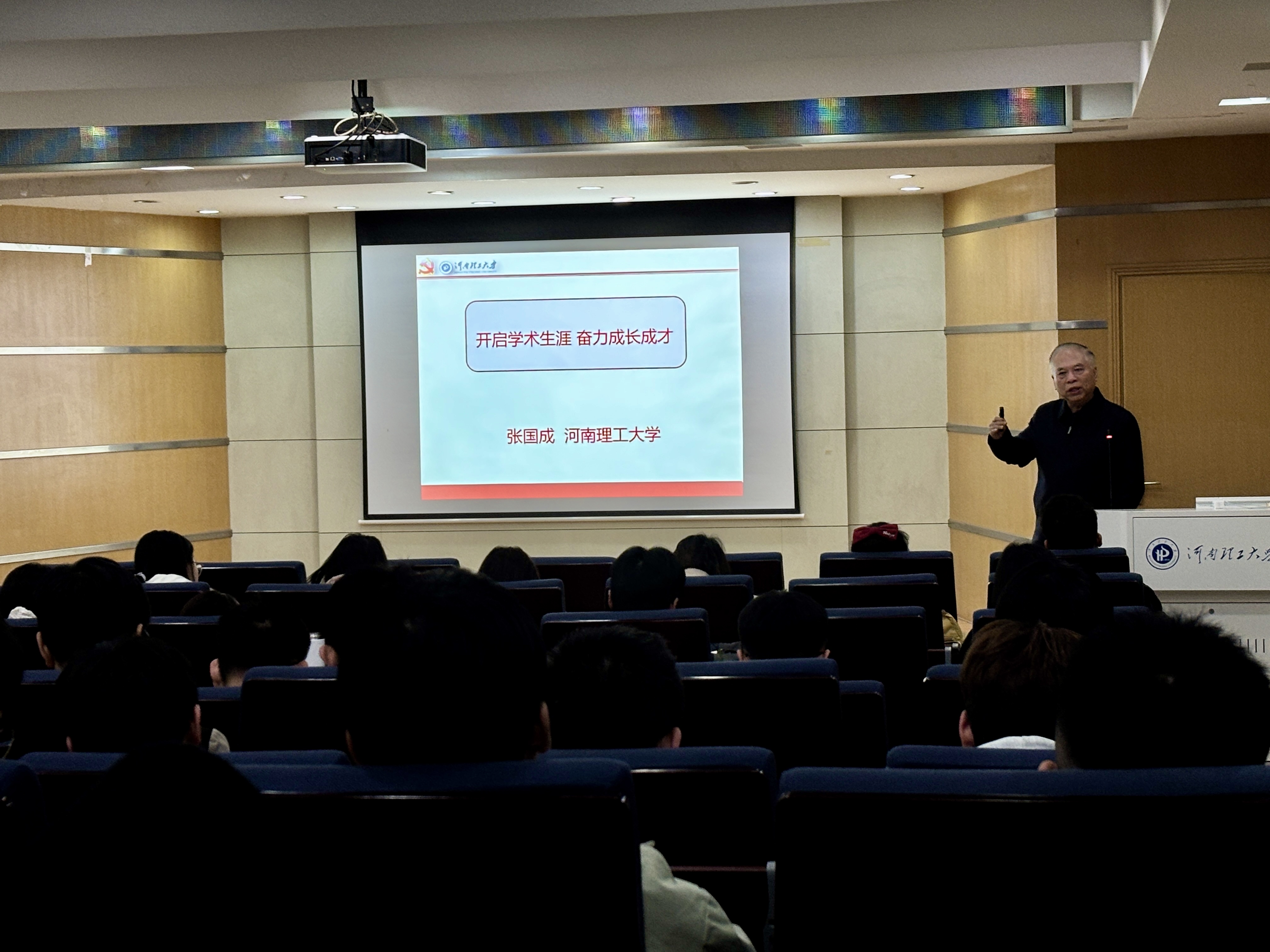 11月25日下午,由党委研工部主办、资环学院承办的第129期研究生知行讲坛活动在ZH111教室顺利举行。讲座以“开启学术生涯 奋力成长成才”为主题,资环学院张国成教授应邀主讲,全校百余名研究生现场聆听。